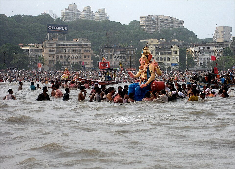On the 10th day (Anant Chaturdashi), the idols are taken in grand processions with drums (Dhol-Tasha) to rivers, lakes, or the sea for immersion.