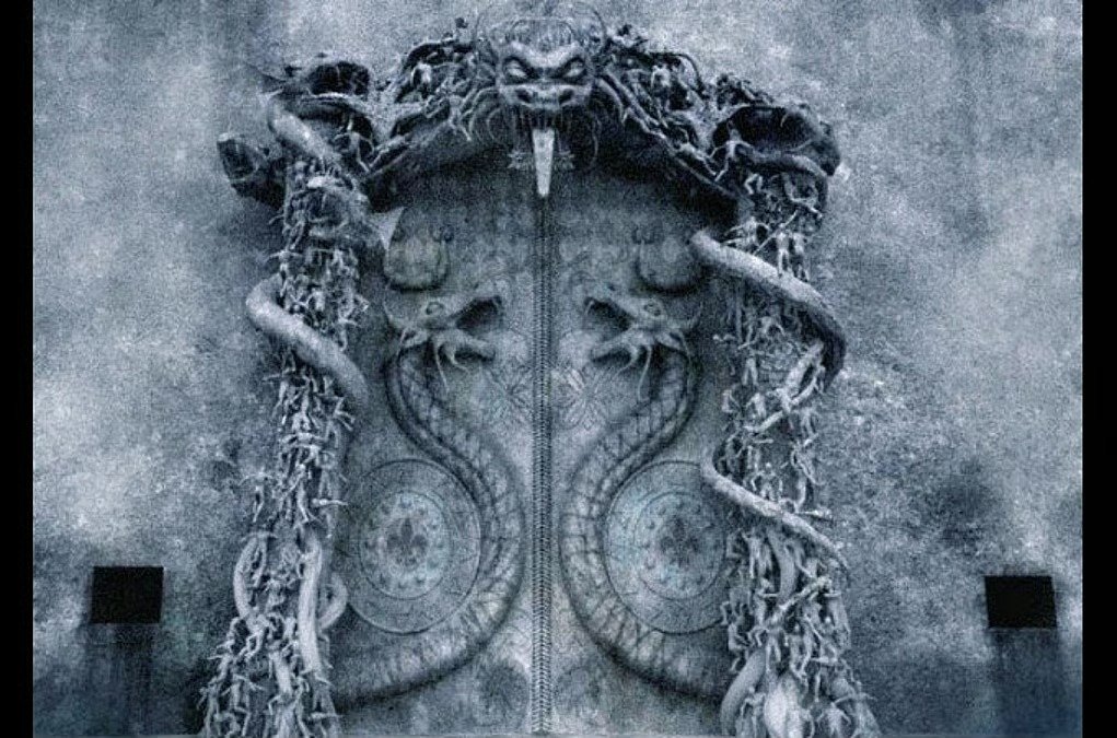 This final door has no nuts, bolts, or latches. Instead, it is adorned with the carvings of two massive Cobras.