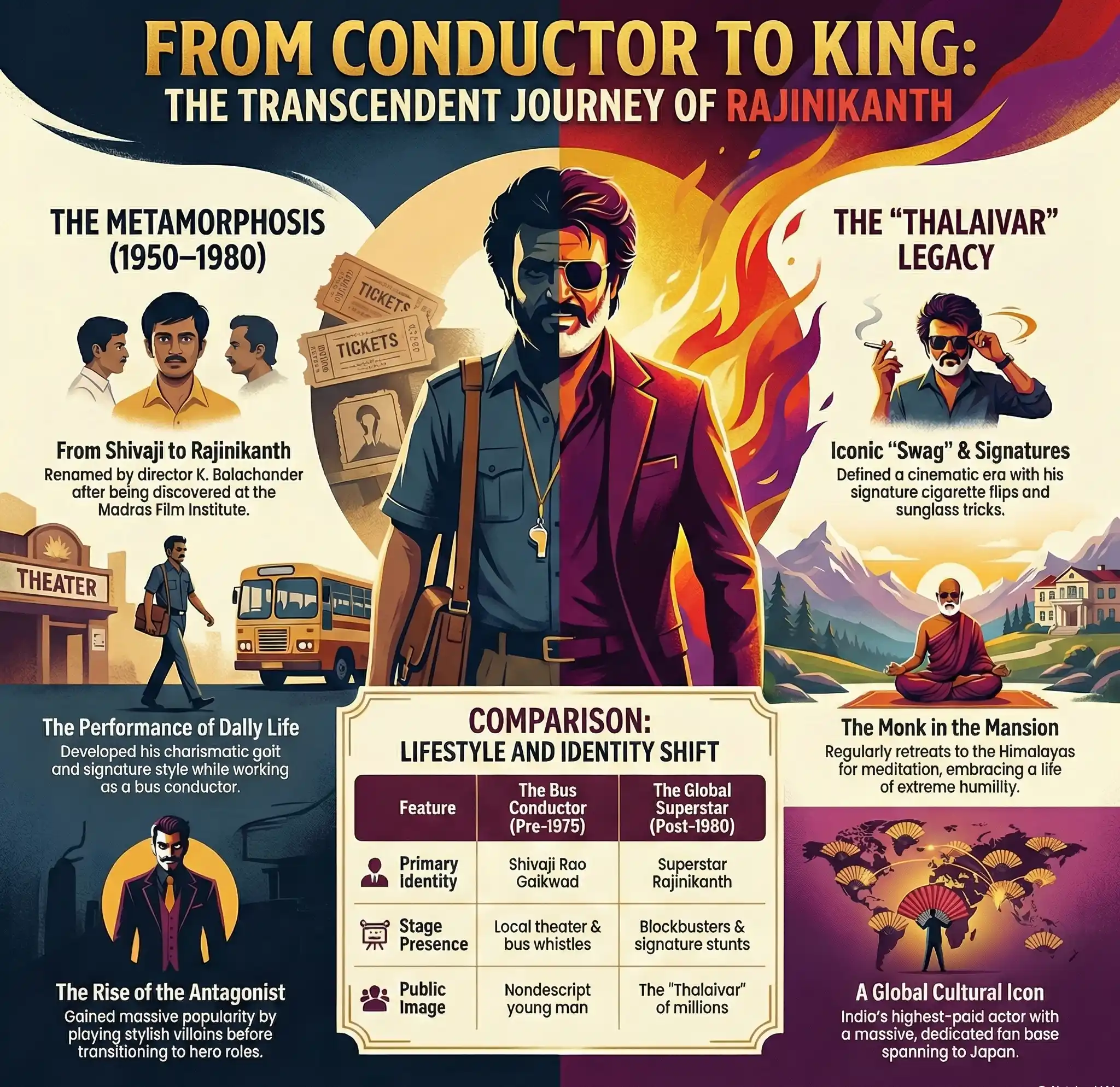 The Rajinikanth life story is a testament to the fact that destiny is not just about where you start, but about the courage to follow a path that others cannot see. He remains an enigma—a man who wears the crown of superstardom with the heart of a seeker. Whether he is flipping a cigarette on a 70mm screen or meditating in the silent folds of the Himalayas, he embodies the spirit of resilience. For every “Curious Indian,” Rajinikanth is more than just an actor; he is proof that with enough style, heart, and faith, a bus conductor can indeed become a king.