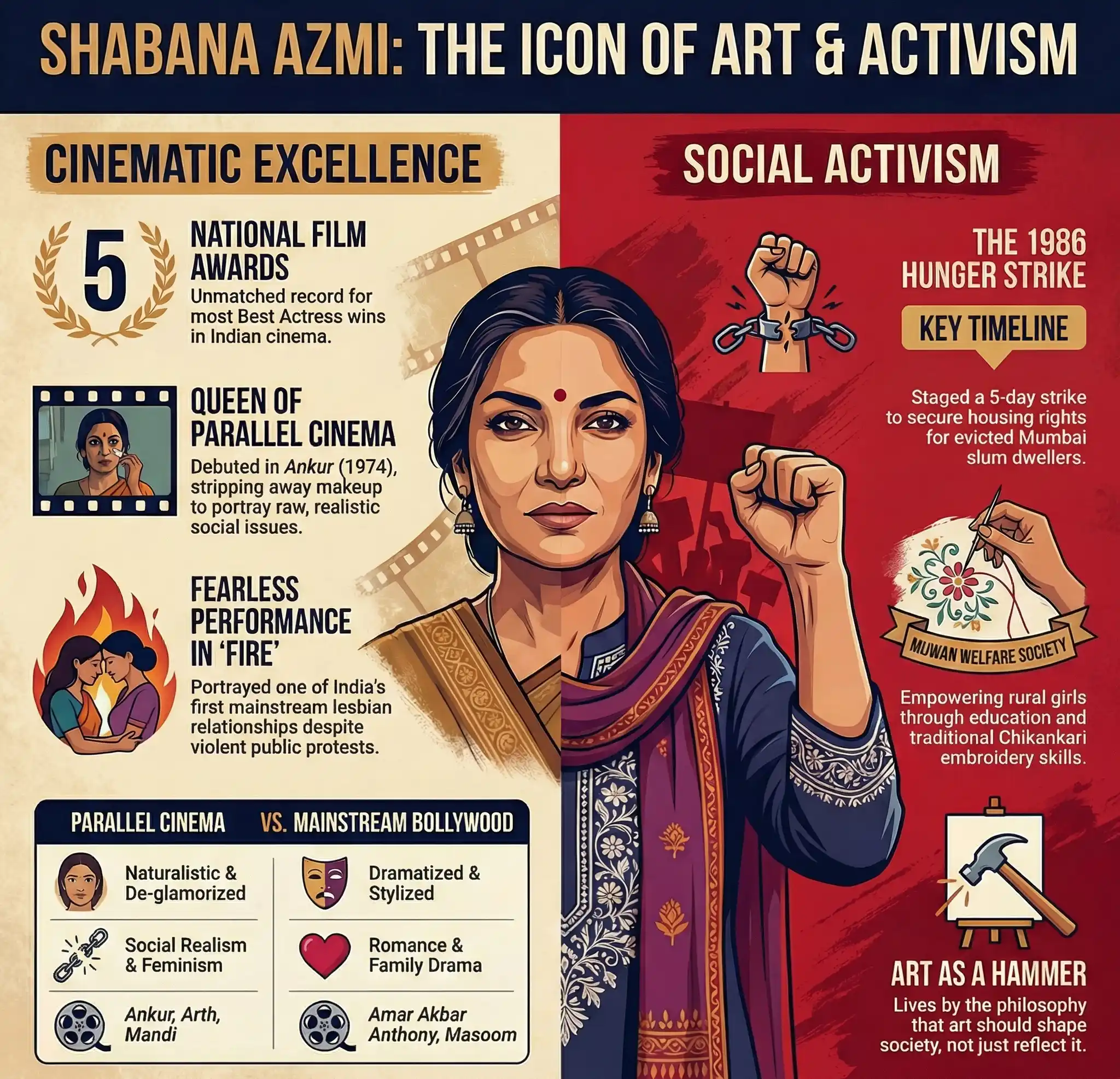 If acting is her profession, activism is her soul. The Shabana Azmi social activism journey is as illustrious as her filmography. She has been a tireless crusader for the rights of slum dwellers in Mumbai through her organization, Nivara Hakk. She famously went on a hunger strike in 1986 to demand alternative housing for evicted slum dwellers.