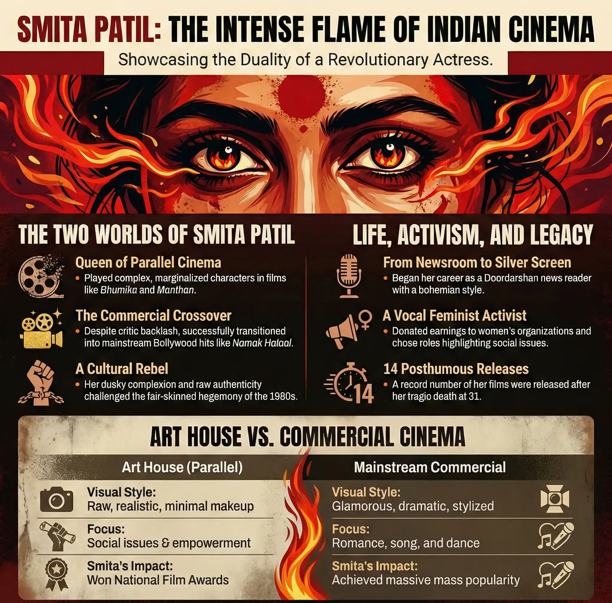 Smita Patil was not merely an actress; she was a phenomenon who bridged the gap between the silence of art-house cinema and the clamor of Bollywood. In a career spanning just over a decade, she delivered performances that etched her name into the annals of film history. This article explores her transition from a Doordarshan news anchor to the face of the feminist movement in Indian cinema. We delve into her intense rivalry with contemporaries, her controversial yet deeply felt personal life, and her tragic, untimely death at the age of 31. It is a narrative of raw talent, unyielding conviction, and a destiny that burned too bright, too fast.